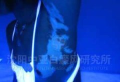 2年前始发左上腹小点状白斑,后逐渐增大成片状,并发展至同侧胸