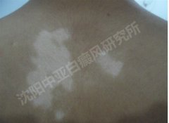 患者自幼记得足踝部有一硬币状白斑,八年前腰骶部出现白斑,始于
